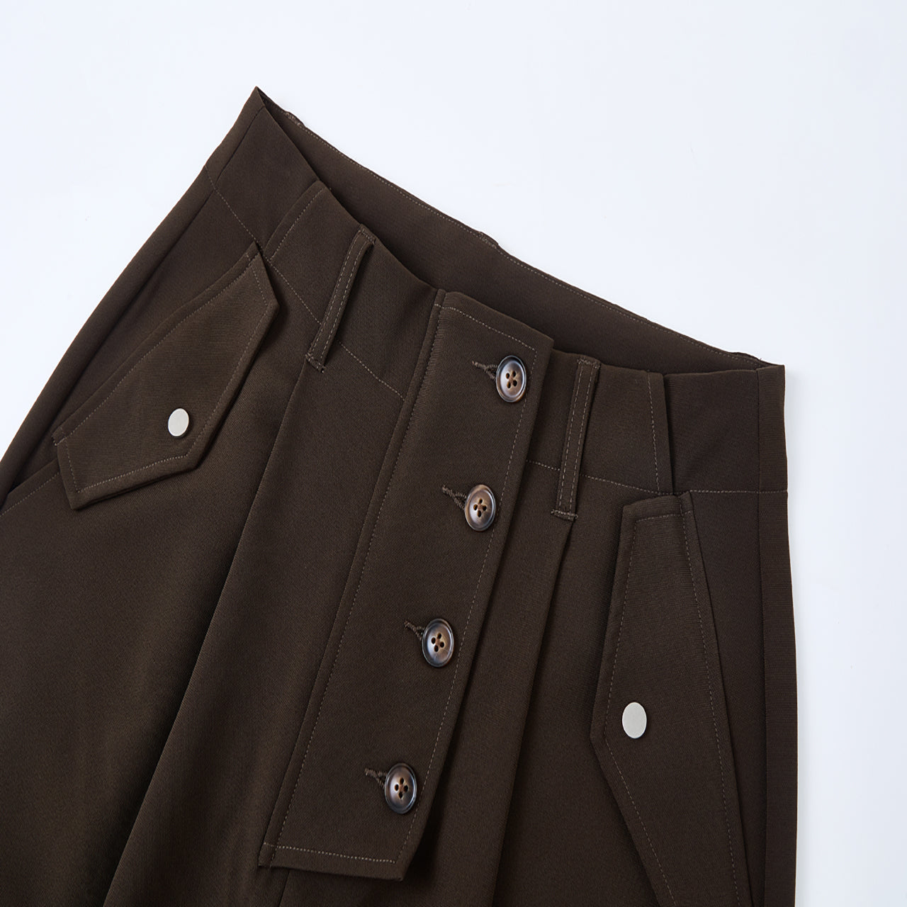 コロゾボタンの比翼開きに加え、メタルスナップやスライダーを組み合わせて、モダンなミリタリーテイストに。